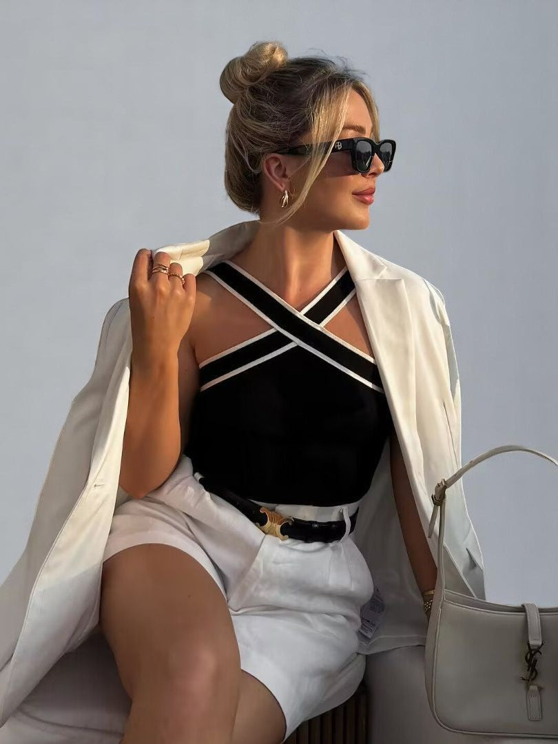 The Amaia tank top brings a distinctive flair to any outfit, enhancing your look with a touch of elegance. Featuring a stylish crossed design, it's an essential piece for the fashion-savvy individual. Whether dressed up or down, this Amaia tank top will make a statement and help you stand out from the crowd.